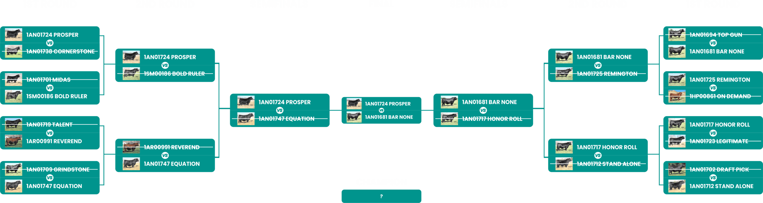 Each round, vote for the sires you believe will leave a lasting legacy of real-world performance. The winner? Crowned by you—the producers who know what it takes to raise the good ones.