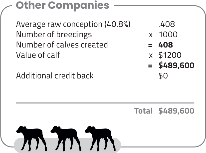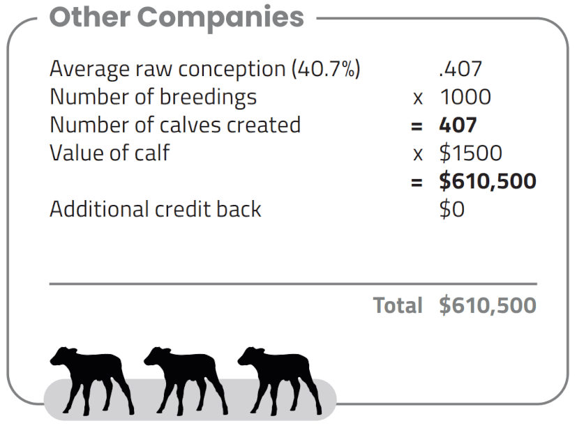 Increased fertility equals increased calves. When return on investment matters, make sure you are using the best semen to get the most calves in your strategic breeding plans. Below is some simple math that looks at what impact increased fertility can mean in dollars and cents.